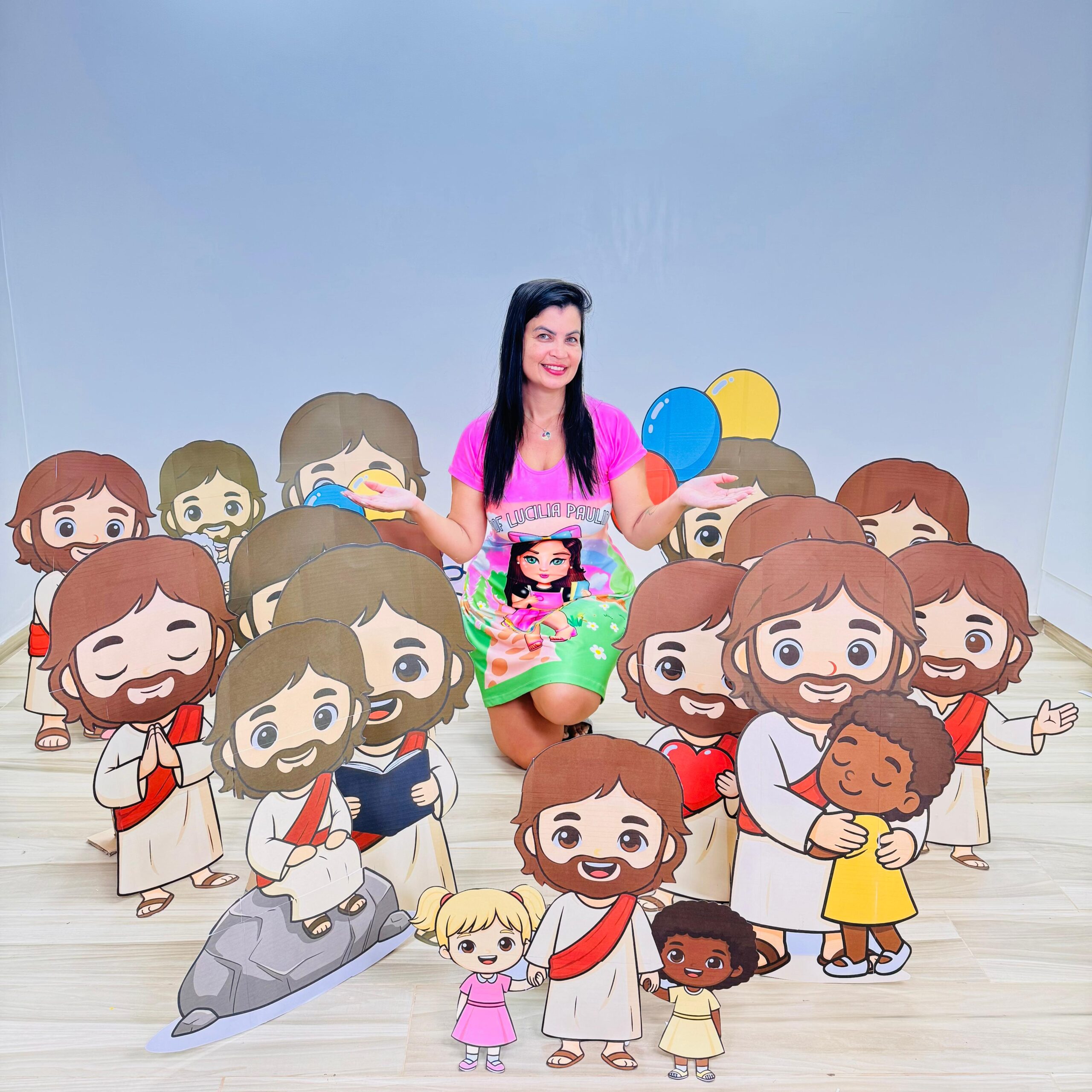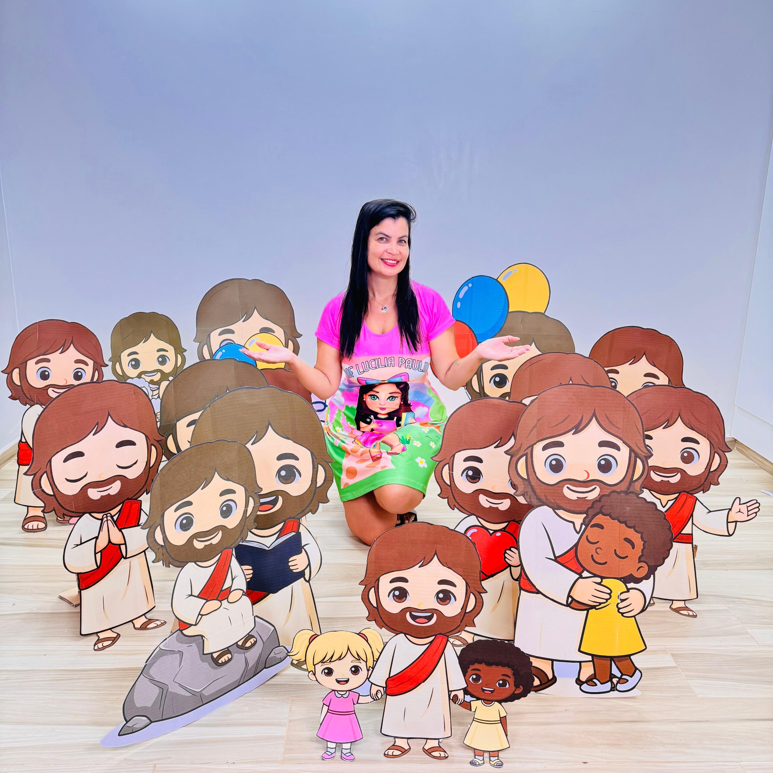 Esse kit exclusivo vem com 20 modelos diferentes de Jesus, todos pensados para transformar o ambiente com criatividade e significado.