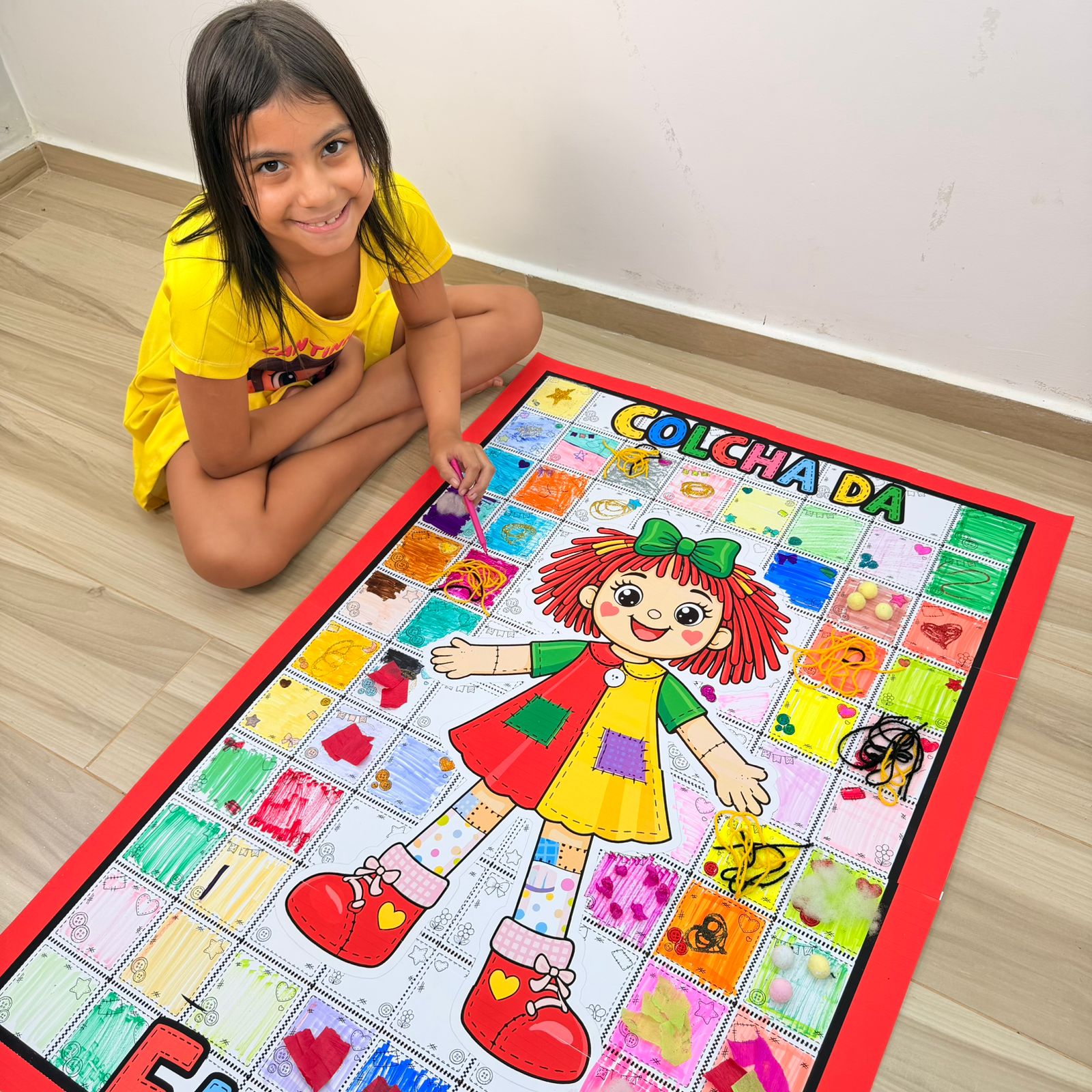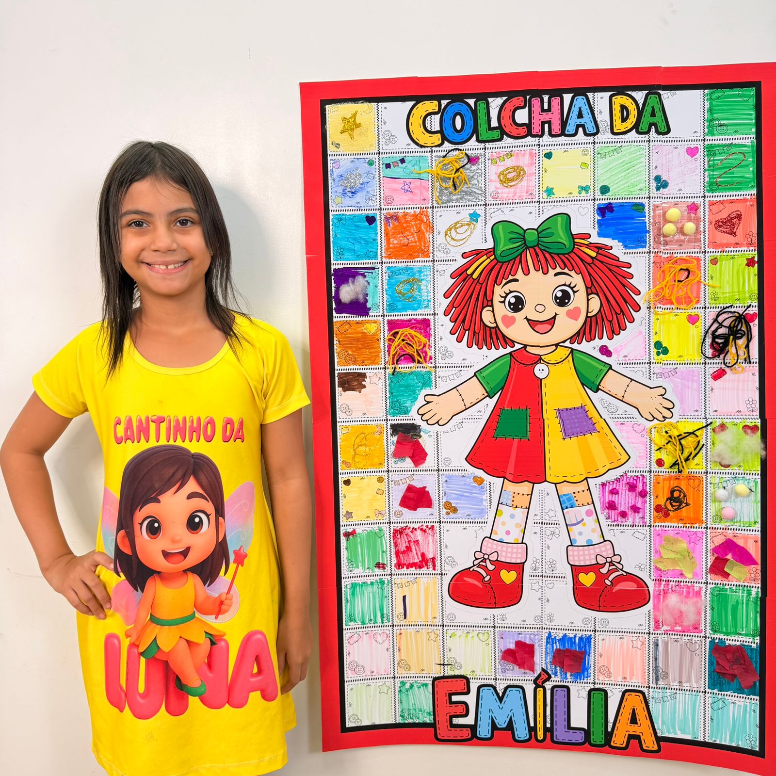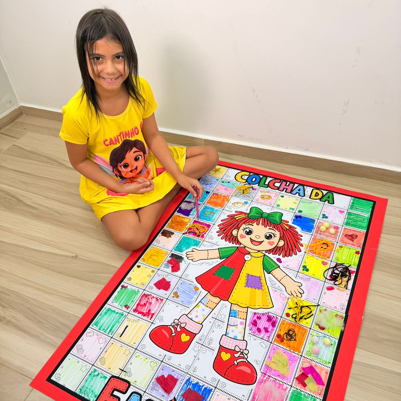 Esse PDF vem com a Colcha da Emília ampliada, perfeita para montar um painel grande e bem chamativo, além de acompanhar o guia da professora com orientações de uso.
