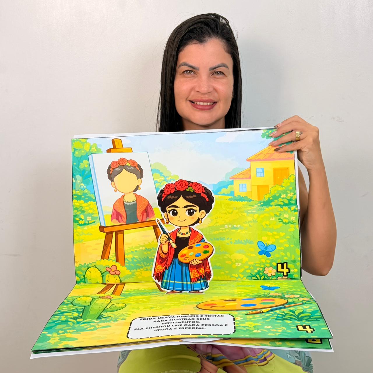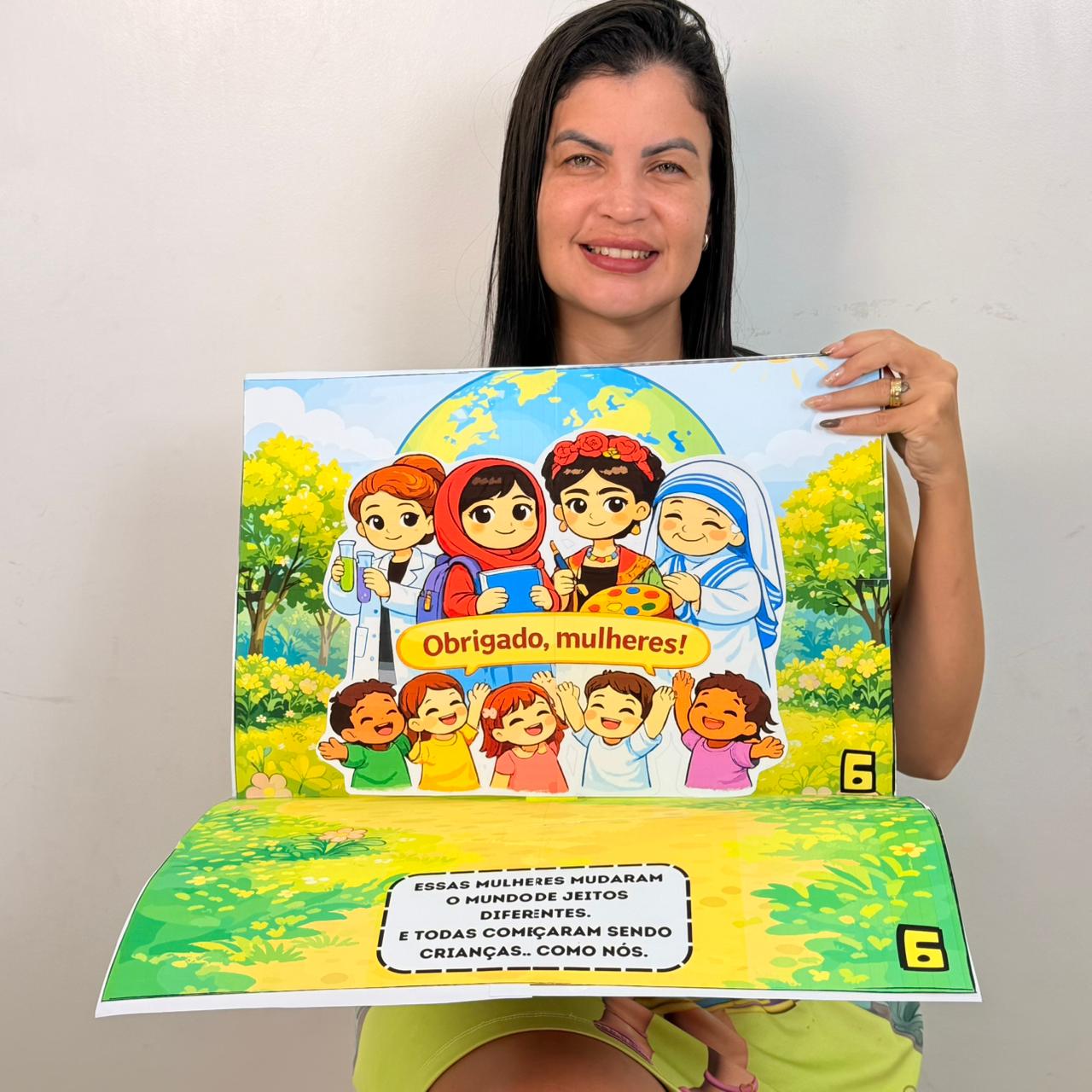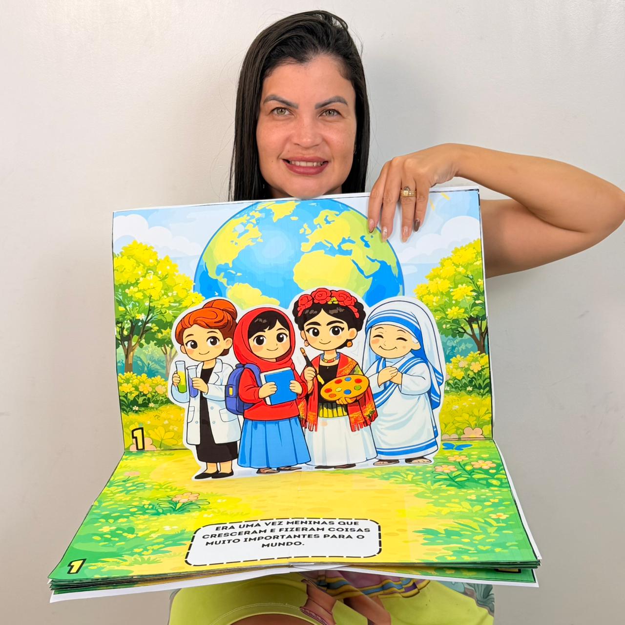 Um livro 3D encantador para trabalhar o Dia Internacional da Mulher com as crianças de forma leve, visual e significativa. Cada página apresenta uma mulher inspiradora, com cenário e personagem em pé, deixando a contação muito mais viva!