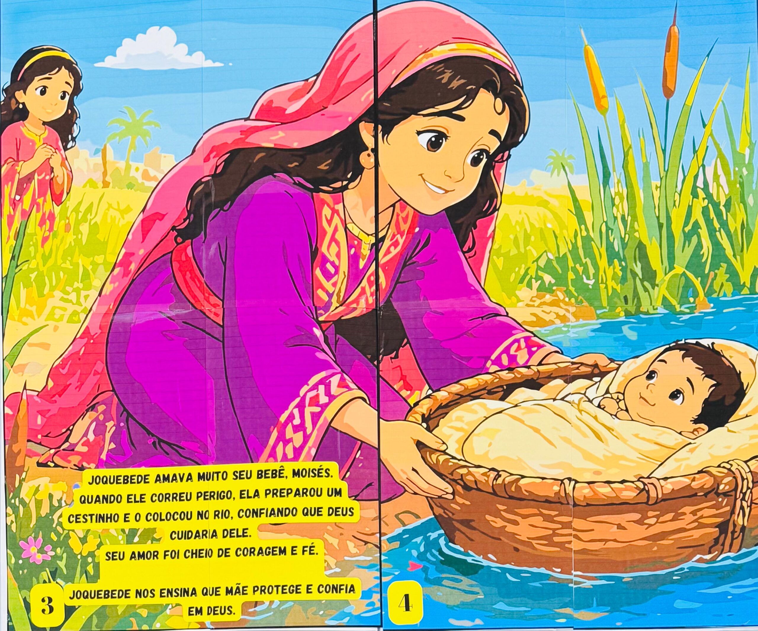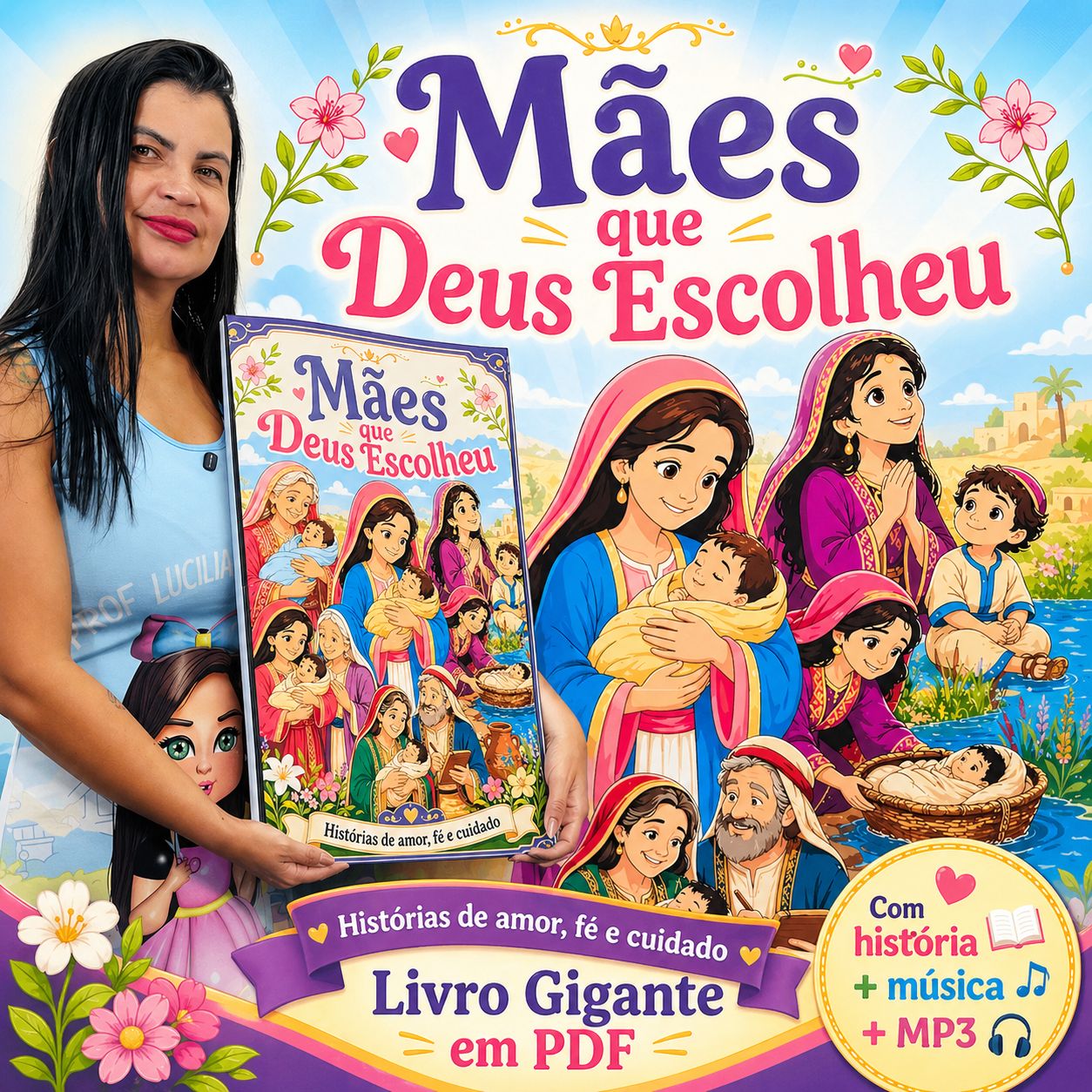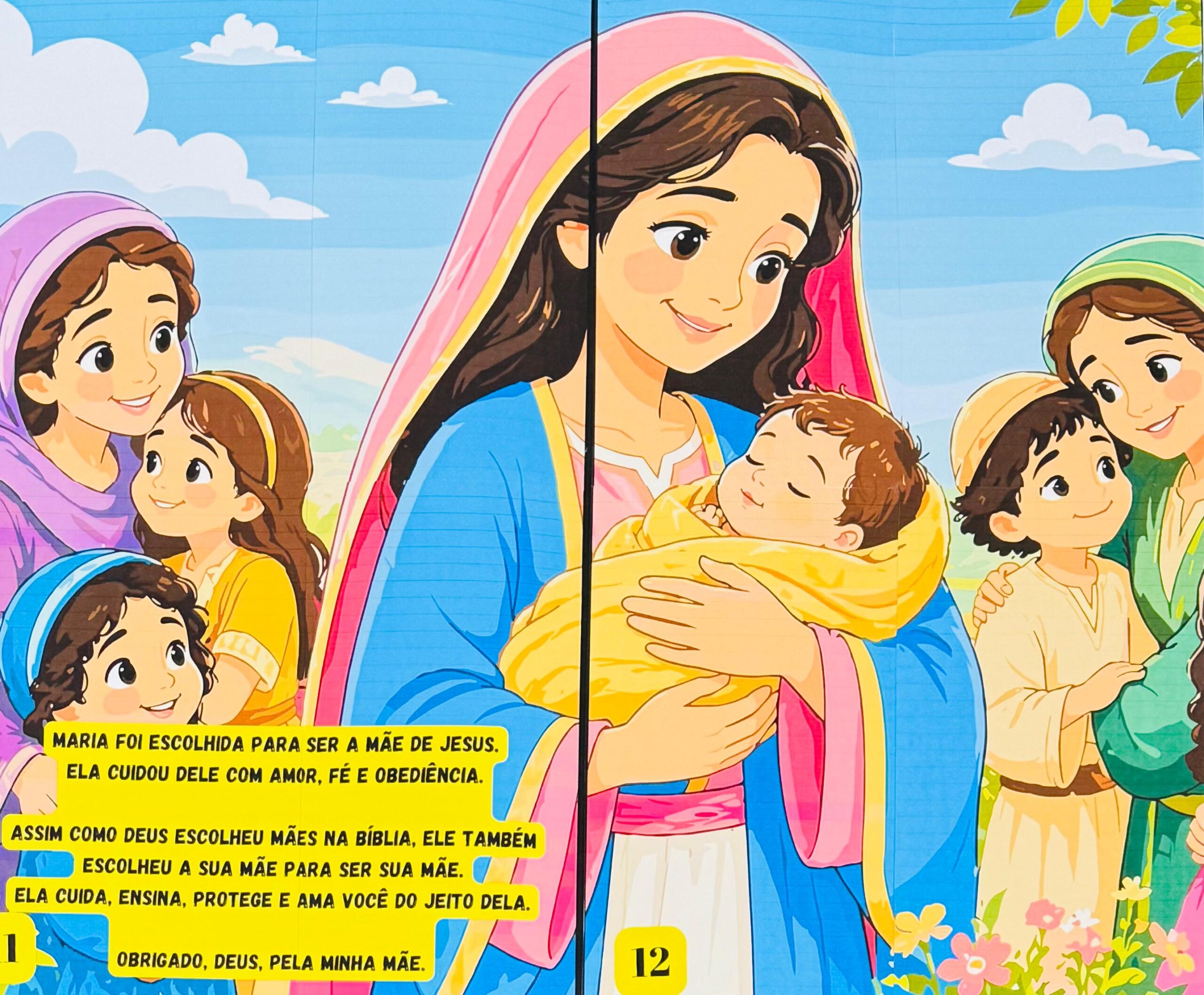 Um material lindo para trabalhar com as crianças as histórias de algumas mães da Bíblia, mostrando amor, fé, cuidado, oração e confiança em Deus.