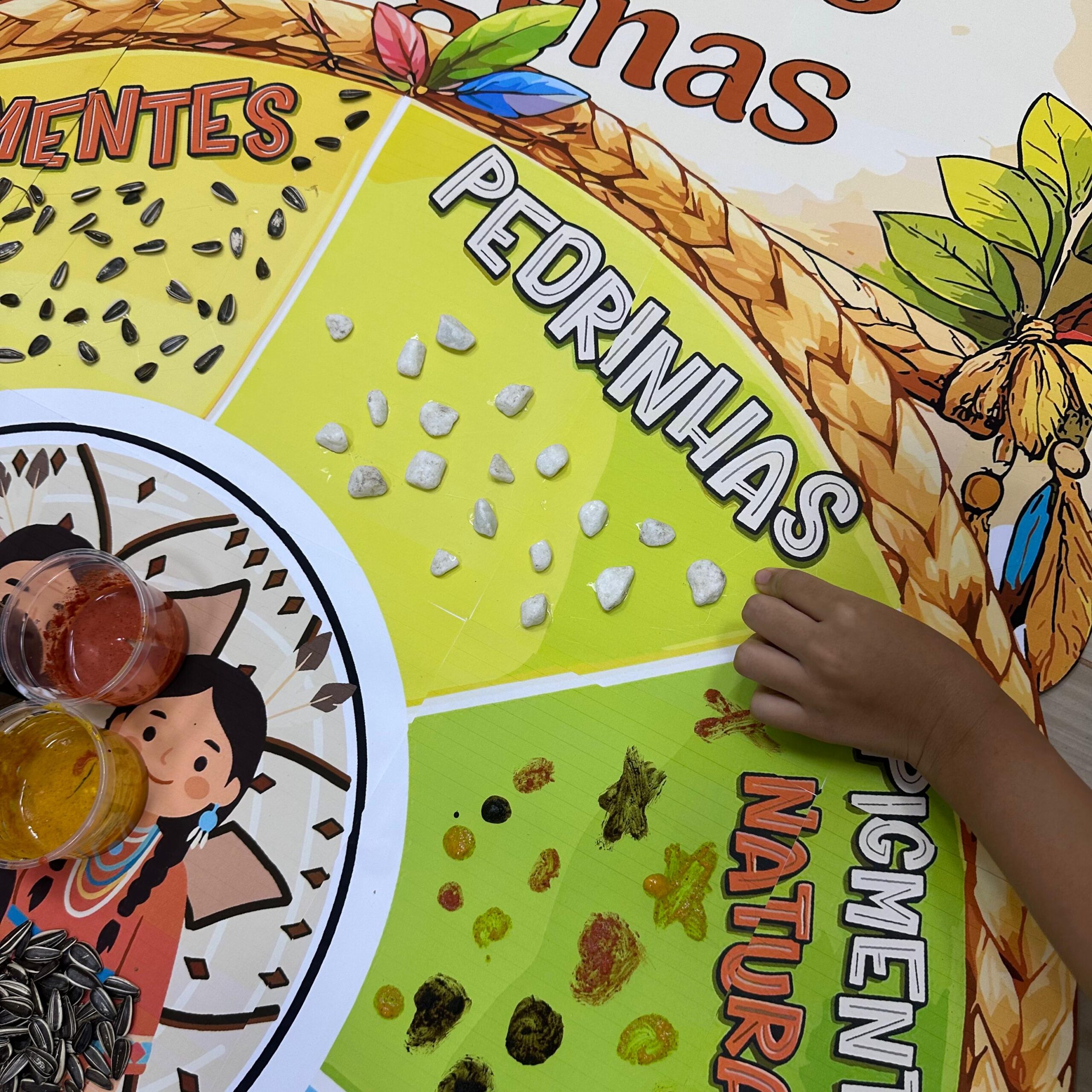 Ao todo, o arquivo conta com 39 páginas e foi pensado para que as crianças participem de forma ativa, explorando folhas, sementes, pedrinhas, milho, barbante, grafismos e outras vivências dentro da proposta.