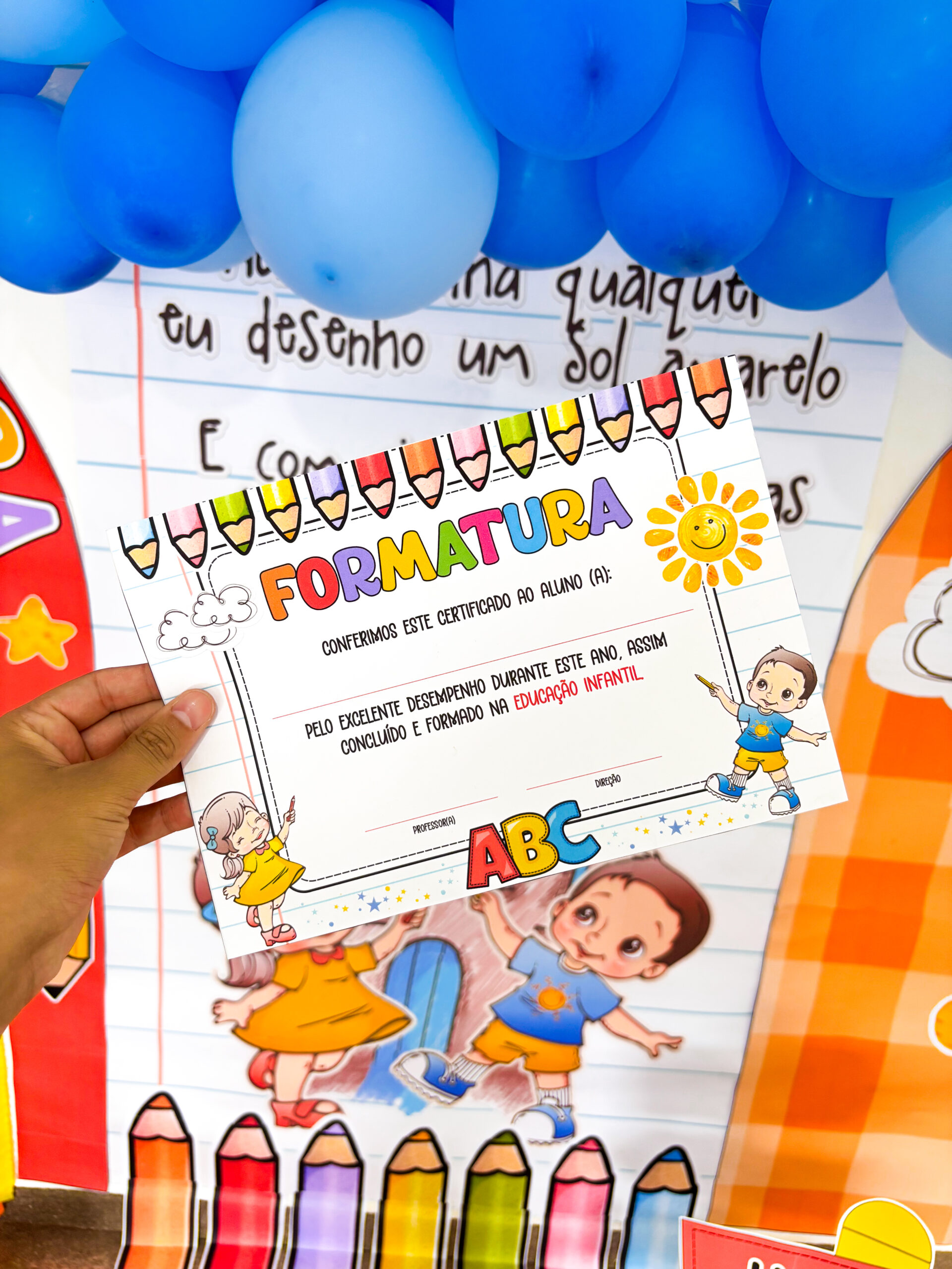 um capelo e um certificado, tornando a formatura do ABC ou a